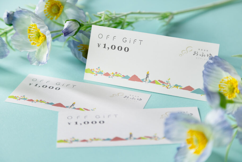 1枚 1,000円(1,000円分のご利用券)として販売しております。 専用の封筒に入れてお渡しいたしますので、大切な方への贈り物やちょっとした手土産にも最適です。