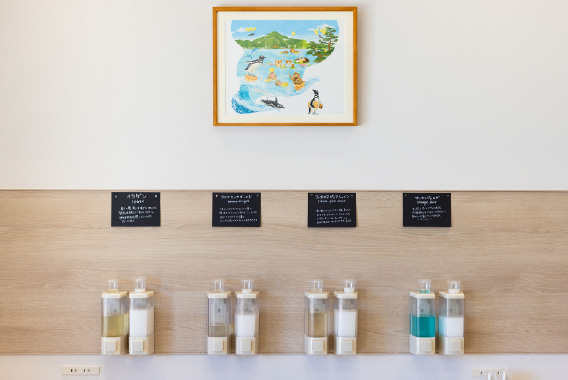 게다가 프런트에서는**「어메니티 바(선택할 수 있는 샴푸등)」**를 실시하고 있어, 좋아하는 브랜드나 향기의 것을 선택해 방에 가져갈 수 있습니다. 빈손으로 오셔도 호화로운 목욕 시간을 즐길 수 있습니다.
