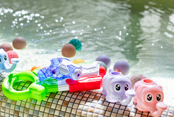 장난감의 종류에 대해: 작은 부품이 있는 것(오음의 우려가 있는 것)이나, 전지를 사용하는 비방수의 장난감, 탈색의 가능성이 있는 것의 반입은 삼가해 주세요.