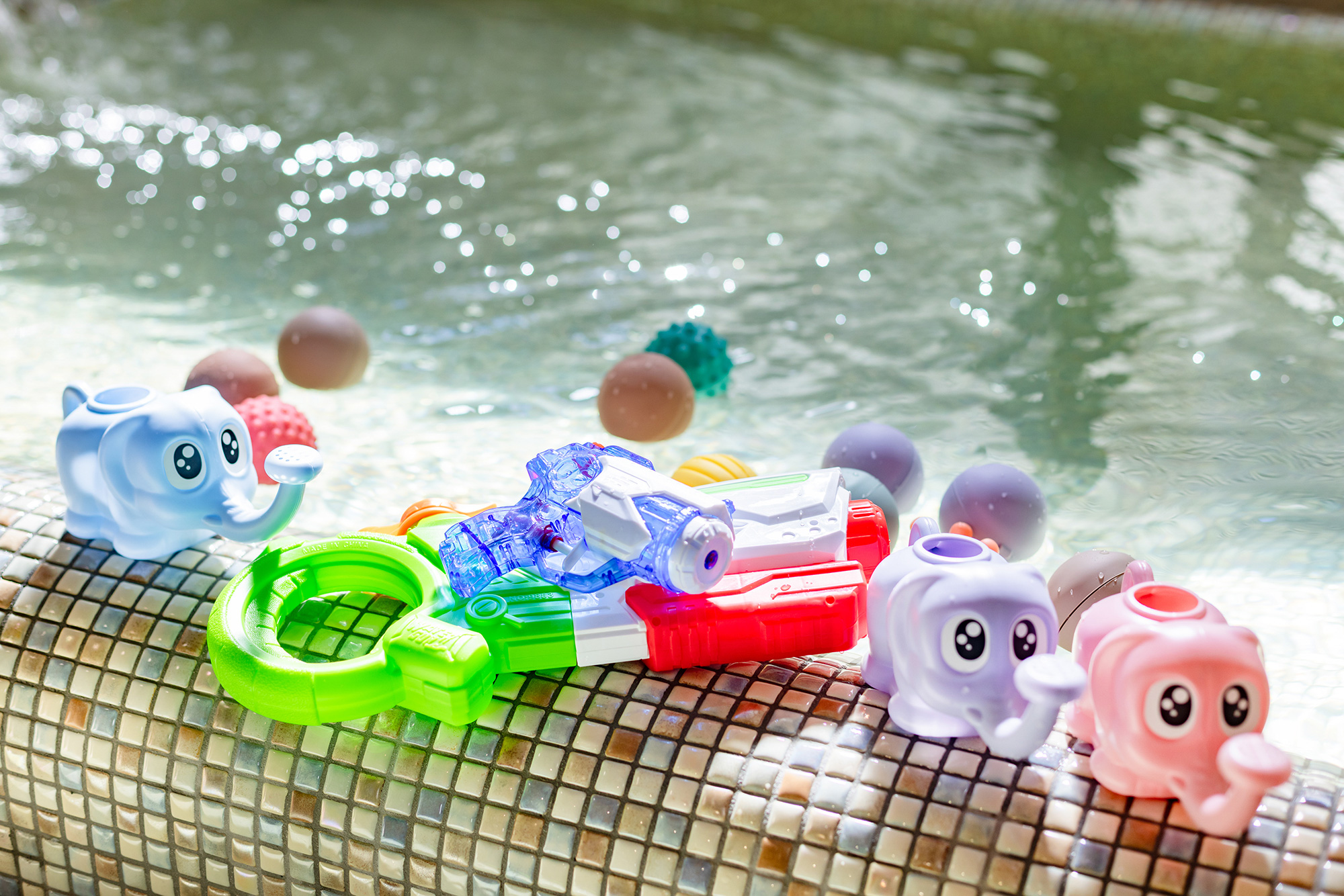 장난감 바이킹으로 놀자! 수철포나 반복 놀 수 있는 물 풍선이 즐비.